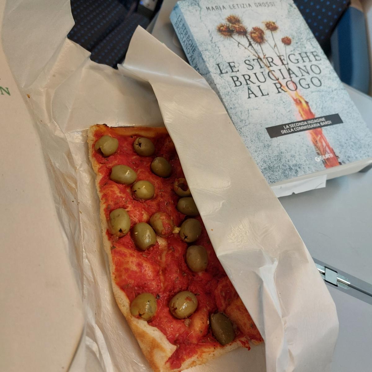 Ed eccovi anche la #pizzarossa alle #olive che ho preso vicino alla stazione di Genova Piazza Principe da Teobaldo e che ho consumato nel treno per Zurigo.