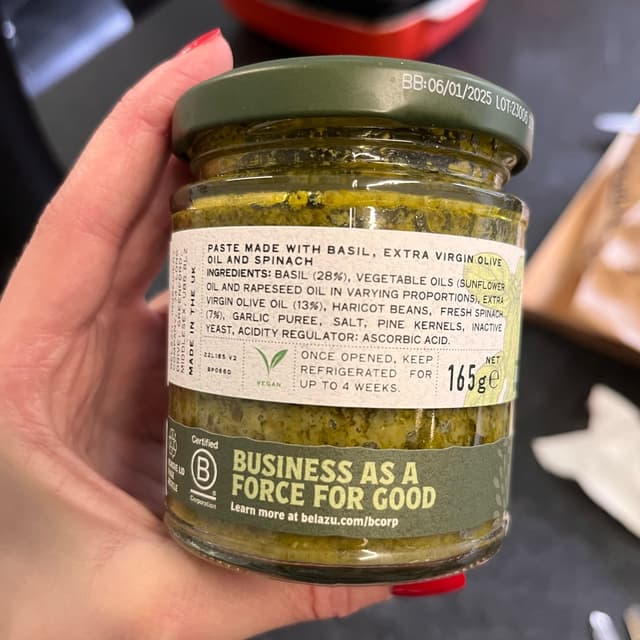 Really tasty pesto even though it’s not made in the traditional italian way, I was disappointed there were in proportion more seed oils than the extra vergin olive oil.