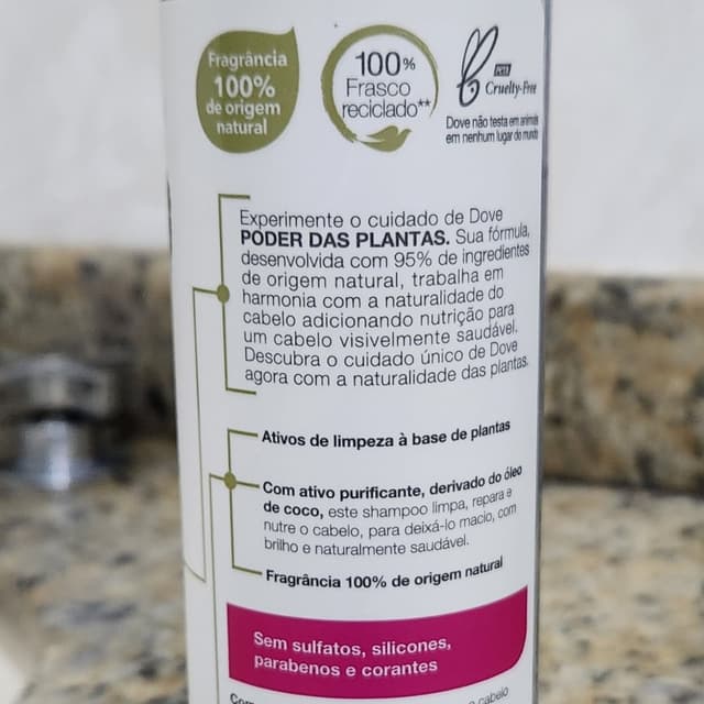 Produzido com 95% origem natural! Frasco 100% reciclado. Não realiza teste em animais. Nutrição para cabelos danificados! Cheirinho muito bom. Deixou os cabelos bem macios.