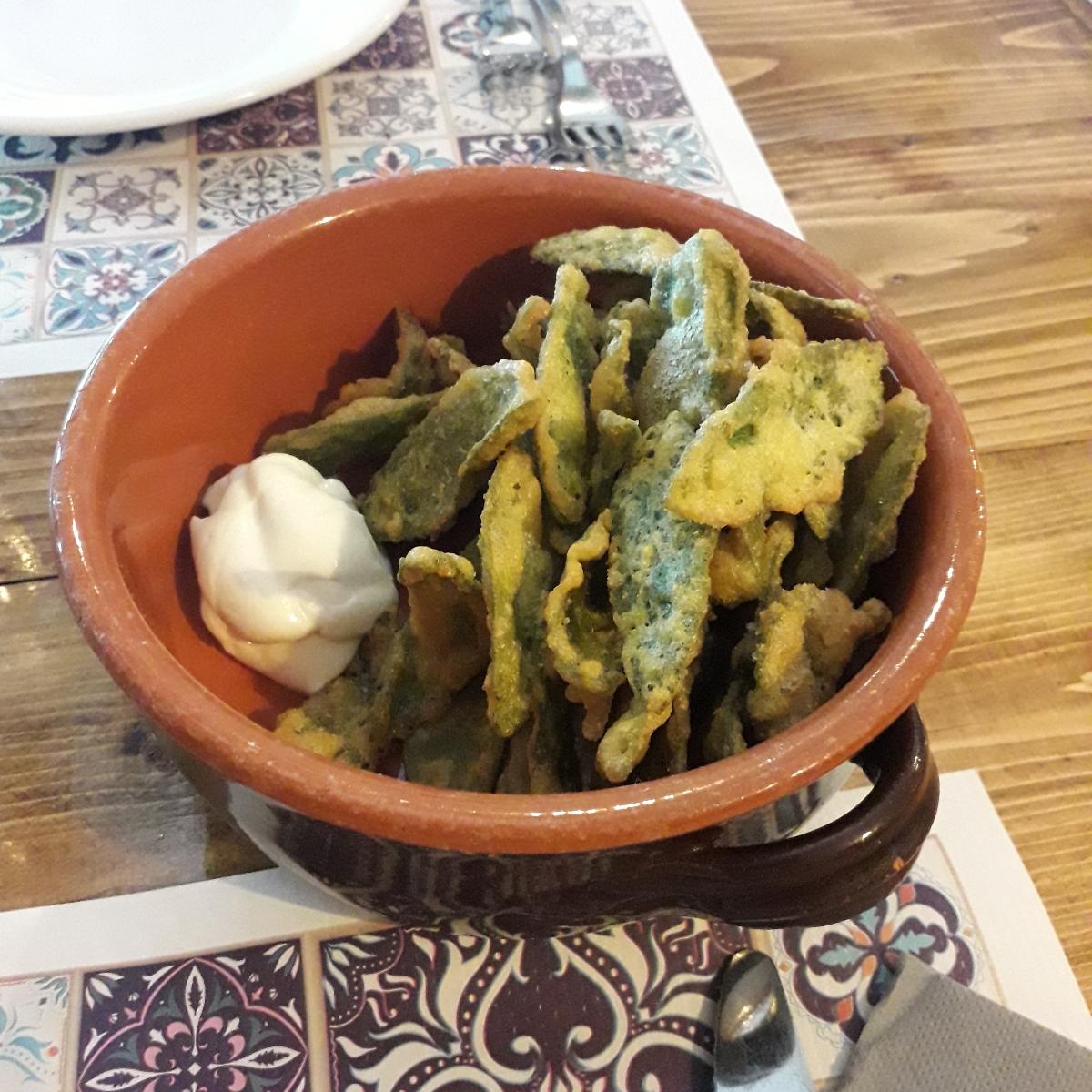 Il locale non è grandissimo ma ha due belle salette, arredate con molto gusto e con quadri molto carini alle pareti. Un locale di atmosfera (anche se quel giorno il personale sembrava un po' scostante nonostante ci fossimo solo noi e un"altra coppia a pranzo 🤔). Cmq come #antipasto abbiamo ordinato questa #salvia 🌱 pastellata FRITTA. Un'ottima scelta, ne avrei ordinato un altro piatto tanto era buona e saporita, non ne avevo mai mangiata così buona 🤤🤤🤤🤤. Se vi capita di andarci vi consiglio assolutamente di ordinarla 😋😋