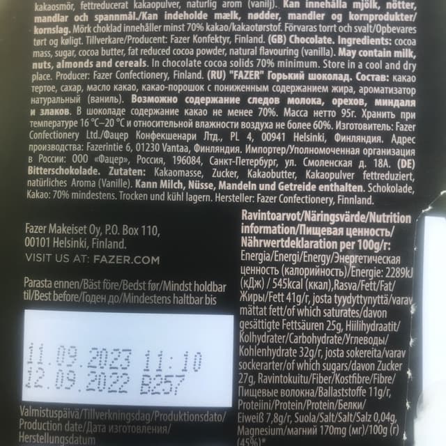 Pure Dark 70% Cocoa by FazerEimile's Review (Jul 12, 2023)