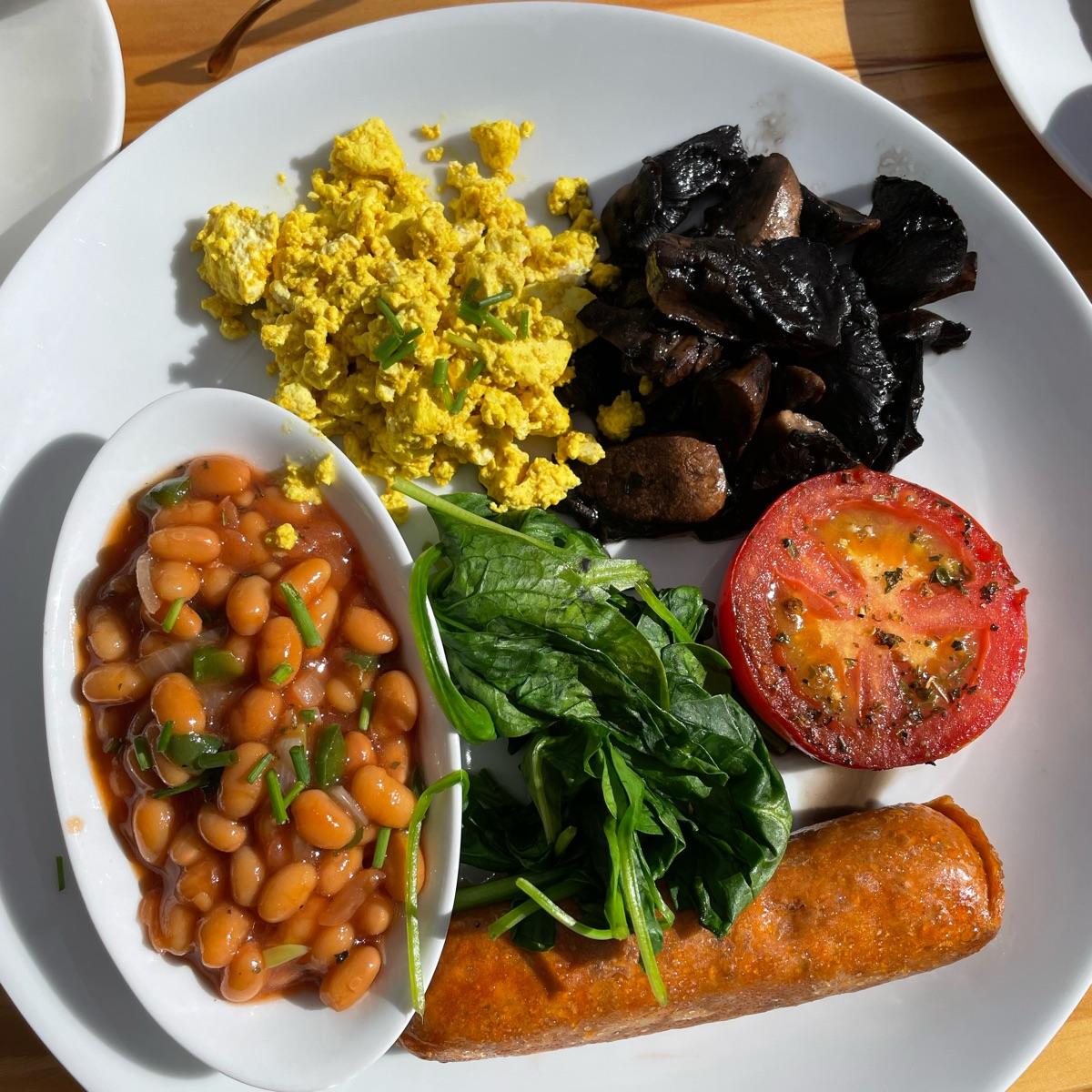 A delicious full cooked breakfast with delicious toast and fresh ingredients - the beyond sausages were especially amazing!