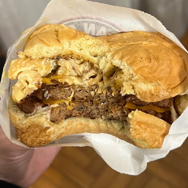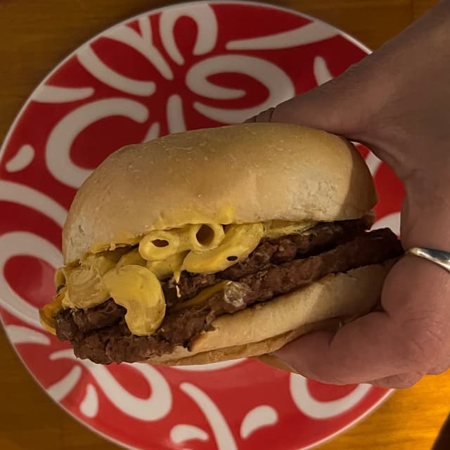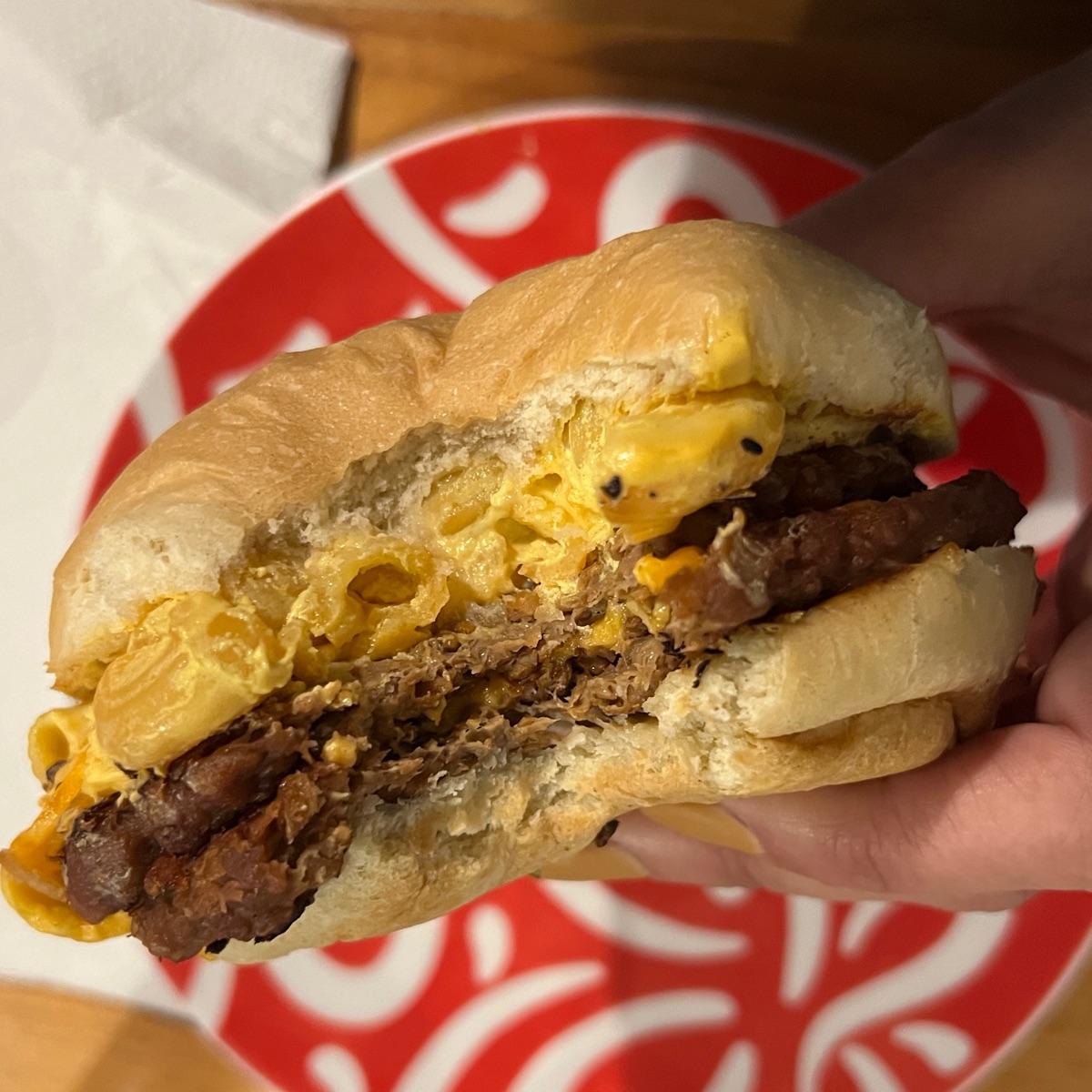 EXCELENTE!!! Hamburguesa mac and cheese, me encanta! Está muy buena. #veganized #govegan #veganfox #abillion #veganfortheanimals #veganoptions