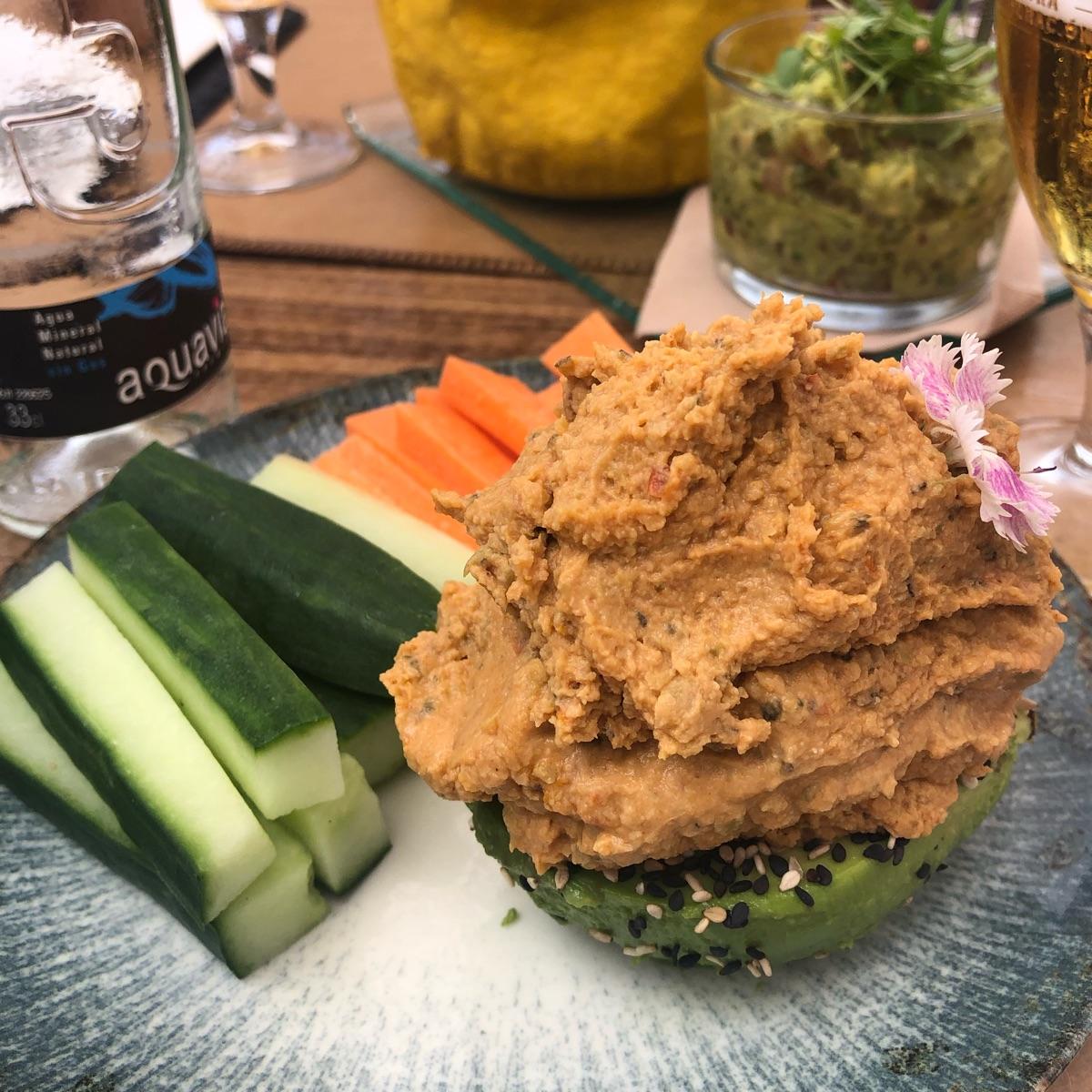 L’hummus può sembrare scontato come piatto, ma questo con avocado e verdure crude è pazzesco!
