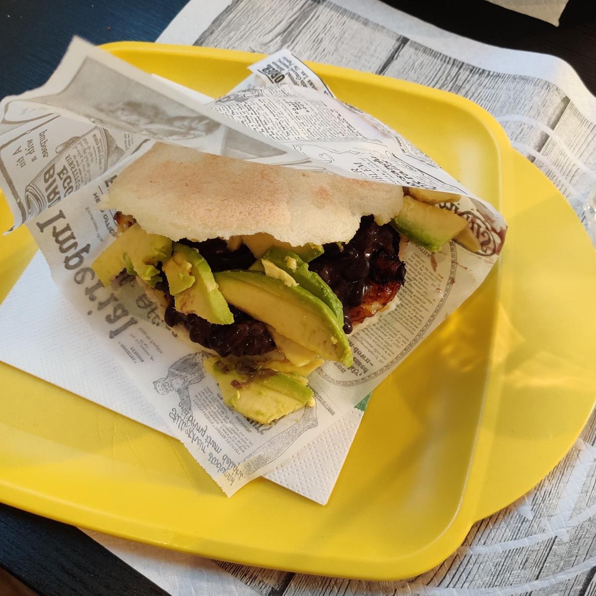Arepa with black beans, fried banana and avocado. Super filling, loved the sweetness of the banana together with salty beans and then the creaminess of avocado. Could have maybe used some pico del gallo or just tomatoes for some freshness.