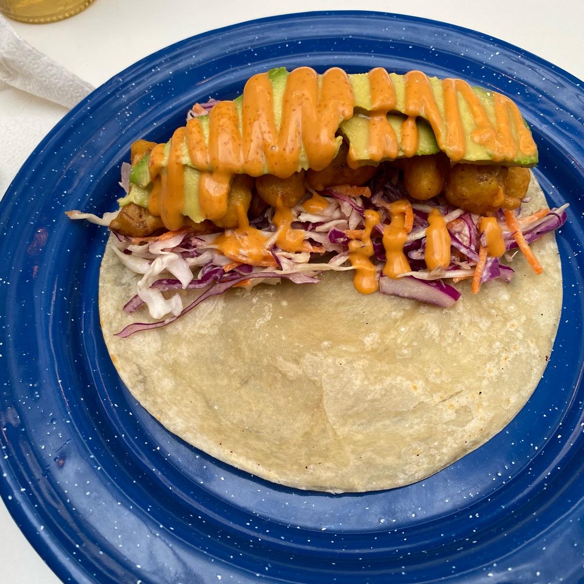 Muy sabroso, me gusta que no se siente tan grasoso a pesar de ser rebosado y las piezas son más pequeñas por lo que no se rompe tan fácilmente y la tortilla es de harina.