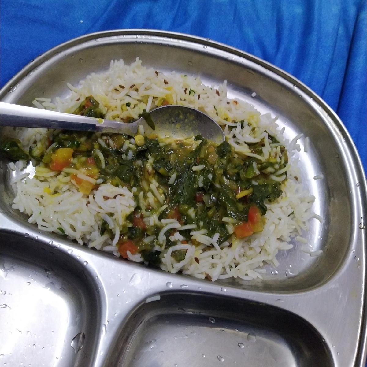 So amazing food. Homely preparation of dal with spinach and hot steam rice. Perfect combo. My fav dish. Lovely food.