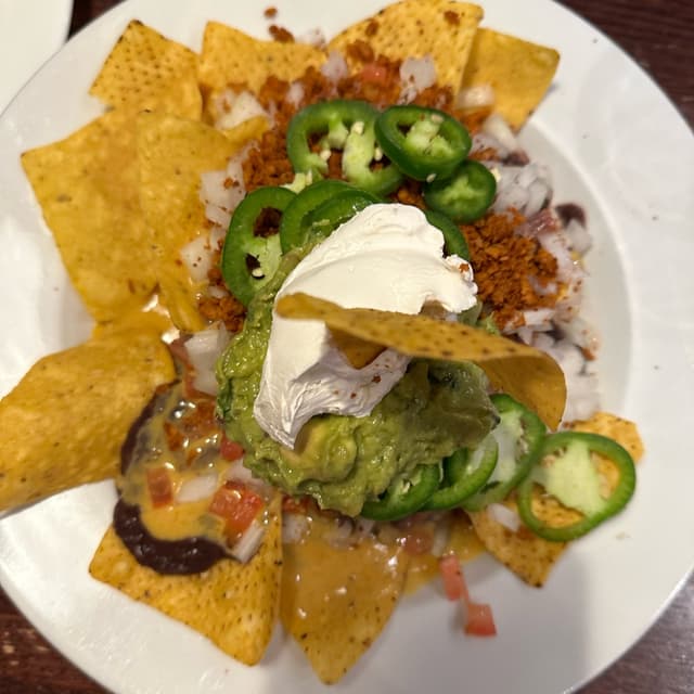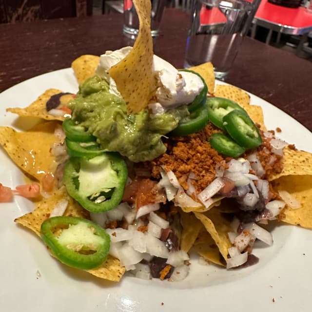 A good nacho, with all the trimmings! I only wish they left off the raw onions as that part is not my favorite. Good dish overall and this restaurant is so fun!