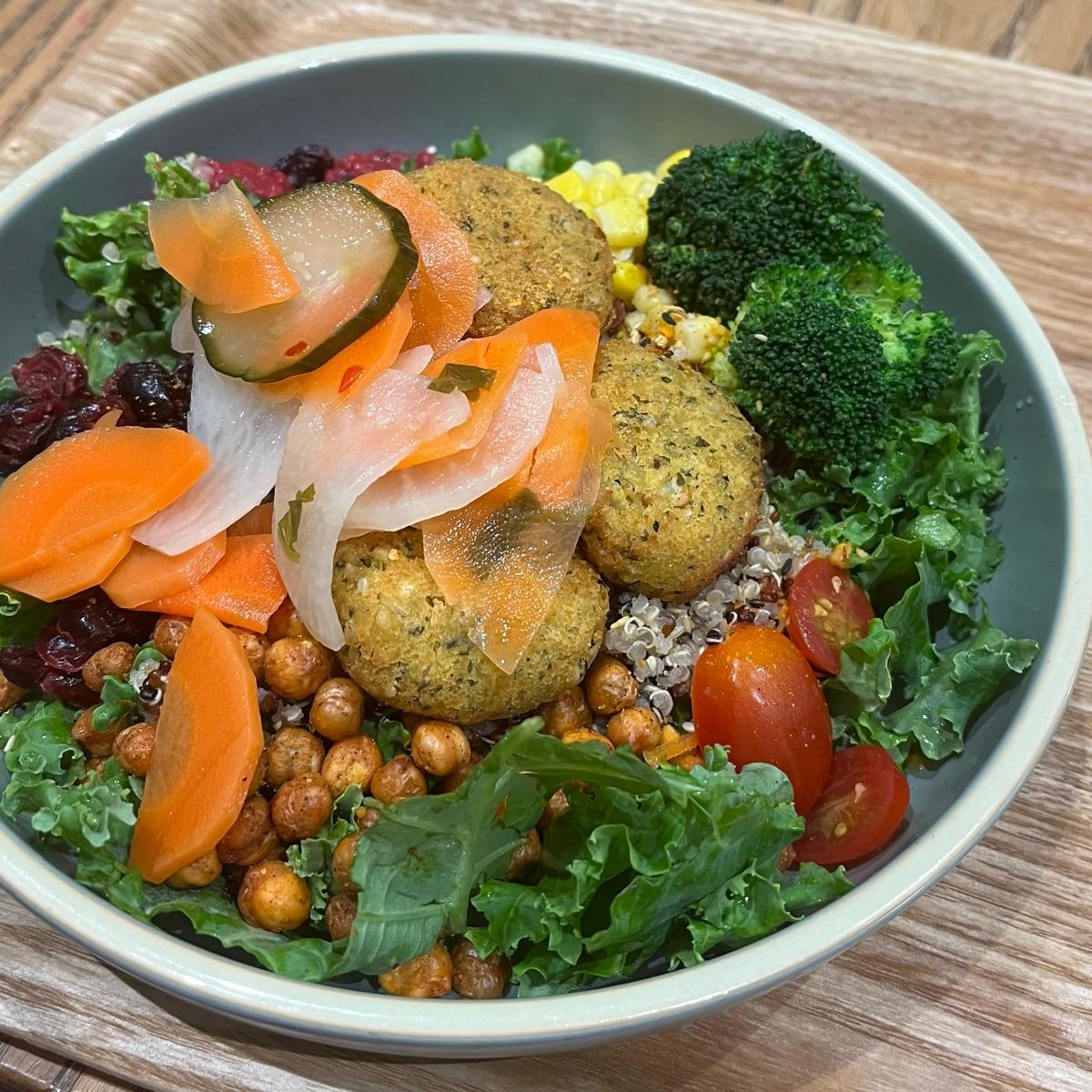Soupspoon doesn’t have a ton of vegan options but the few ones they do have seem to be pretty high-quality. The pura vida bowl was full of goodness! The crisp, golden falafel was fried to perfection. One of my nonvegan family members even specially asked the restaurant if they could give him some of the falafels separately to go with his dish! The roasted chickpeas were very crunchy and the kale, tomatos, and broccoli were very fresh. I got Asian pickles as an extra topping which added a boost of peppery flavor. Overall I’d definitely recommend this delicious bowl!