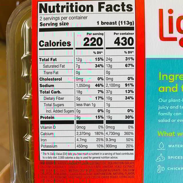 I’m a huge fan of the Lightlife breaded fillets so I was curious how I would like this plain version. It is fairly unseasoned, like the chicken strips, but has a nice base flavor. These could be pretty boring without a plan but if you have a sauce/seasonings/specific dish in mind, these are a good choice as you can season them as you wish. These were easy to season and cook up. I think from a practicality point, though, I’d probably opt for the strips instead of this option as they are basically the same product in a different shape and I’d just cut this one up for pasta or salad in any case. I’d buy this one at a discount again. If the prices were comparable, I’d opt for Daring original in place of this product as I’d use them for the same purpose and I prefer the texture of Daring.