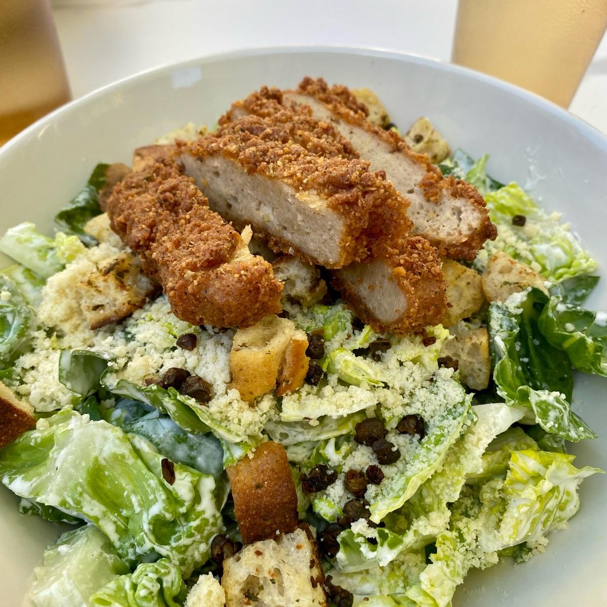 While I love this restaurant, I have lately found their food to be way too salty. This salad, while still tasty, would have been so much better if it were less salty. Frankly, I’m surprised since this is a vegan restaurant and I find that most vegan restaurants aren’t as heavy on the salt as vegan food at non-vegan places. I added fried chicken.