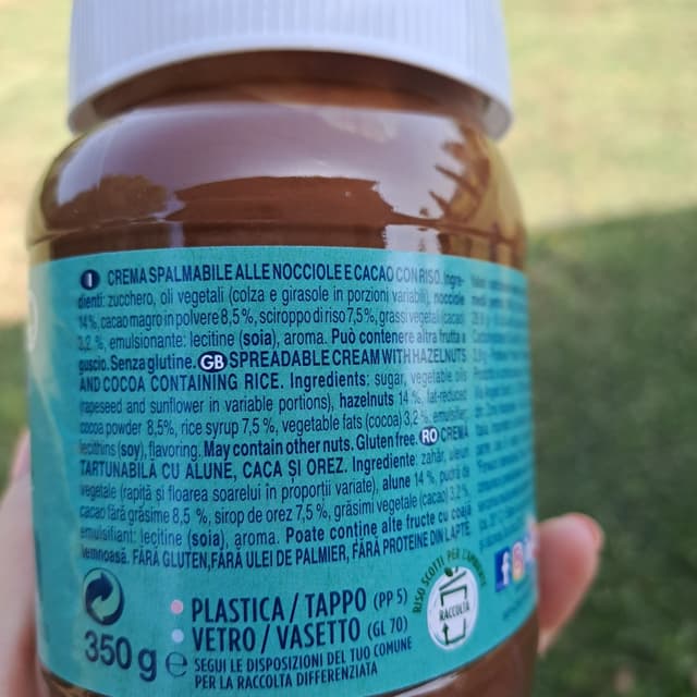 Our crema spalmabile is a lactose-free spreadable cream made with a blend of rice, hazelnuts, and cocoa. It has a smooth and liquid texture, making it perfect for spreading on toast or using as a dessert topping. Its rich and decadent flavor is enjoyed by many, while its lactose-free formula makes it suitable for those with dairy sensitivities. Some customers have reported that it's a tasty and satisfying treat, but others find it too sweet. Overall, it's a creamy and indulgent option for those looking for a dairy-free alternative.