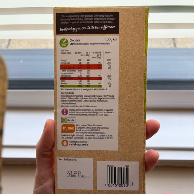 I was surprised to see this in Sainsburys! I was buying another chocolate bar when I spotted this and had to do a double take. A chocolate bar I haven’t tried? We can’t have that 😂