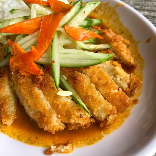 I’m just gonna jump straight in and say it. The #curry was sweet *gasps* 😧 I know. This wasn’t just a little #sweet slipped into a wonder of aromatics. It was ONLY sweet 🤯 I also underestimated its flavour potential altogether as the #currysauce just looked so thin! The breading was #fried to perfection though. The insides were soft and moist 🤤 I guess the rice wasn’t half bad but something about it didn’t feel optimal with such a meal 🤔