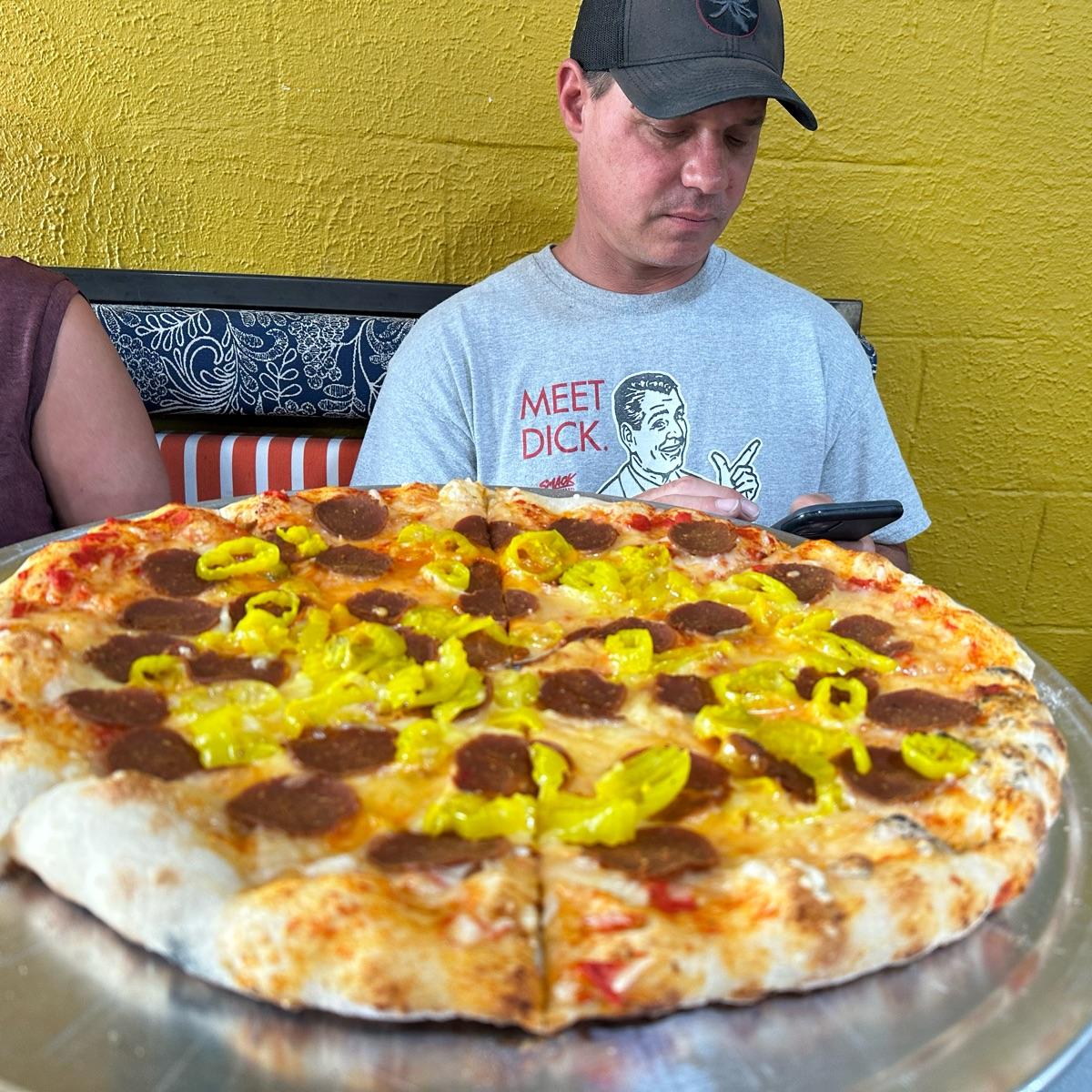 This is excellent pizza. Dough is the most important thing to get right on a pizza in my opinion, and they do a great job. They have 3 vegan cheese options and this time we went with the Violife. I love the taste of the Violife, but it can seem a little sticky when it’s real hot. They offer Miyokos and a cashew cheese as well. They even have a Seitan pepperoni and other great vegan options on the menu as well!