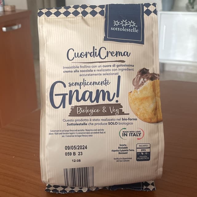 Il ripieno all’interno scarseggia un po’ ma si sente che è una crema di alta qualità: per niente zuccherina e nauseante come per esempio quella di altri biscotti tondeggianti assaggiati che iniziano per gri e finiscono per sbì 😏