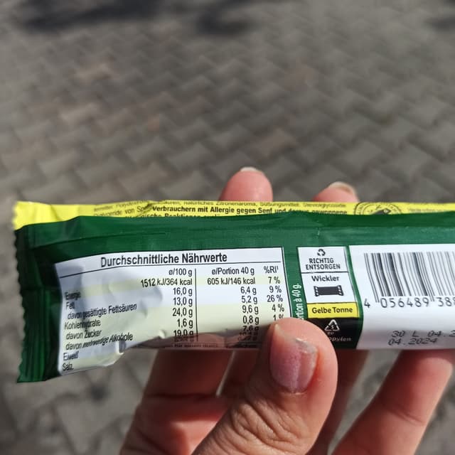 Ganz guter Proteinriegel. Der Geschmack ist ansehnlich und die Konsistenz ist besser als von den meisten. Ist zwar nicht mein lieblings Proteinriegel aber Preis-Leistungsverhältnis ist super und man kann denn gut in der Tasche für Notfall Haben.