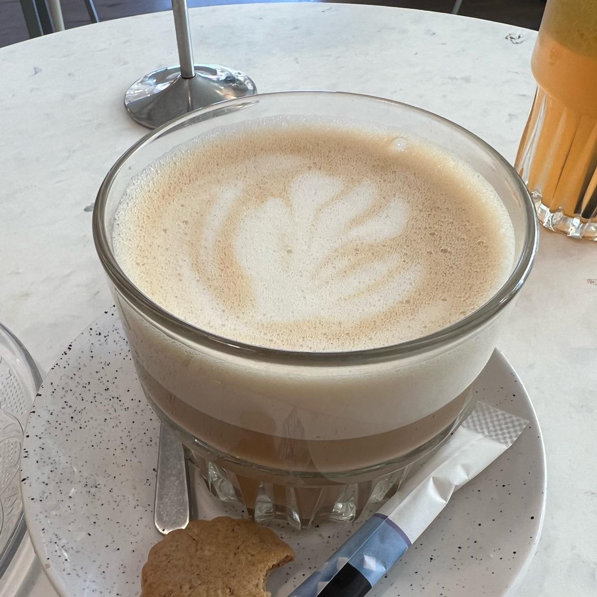 Great caramel latte for breakfast. I love that all coffee drinks are by default with oat milk. Service was super nice and friendly.