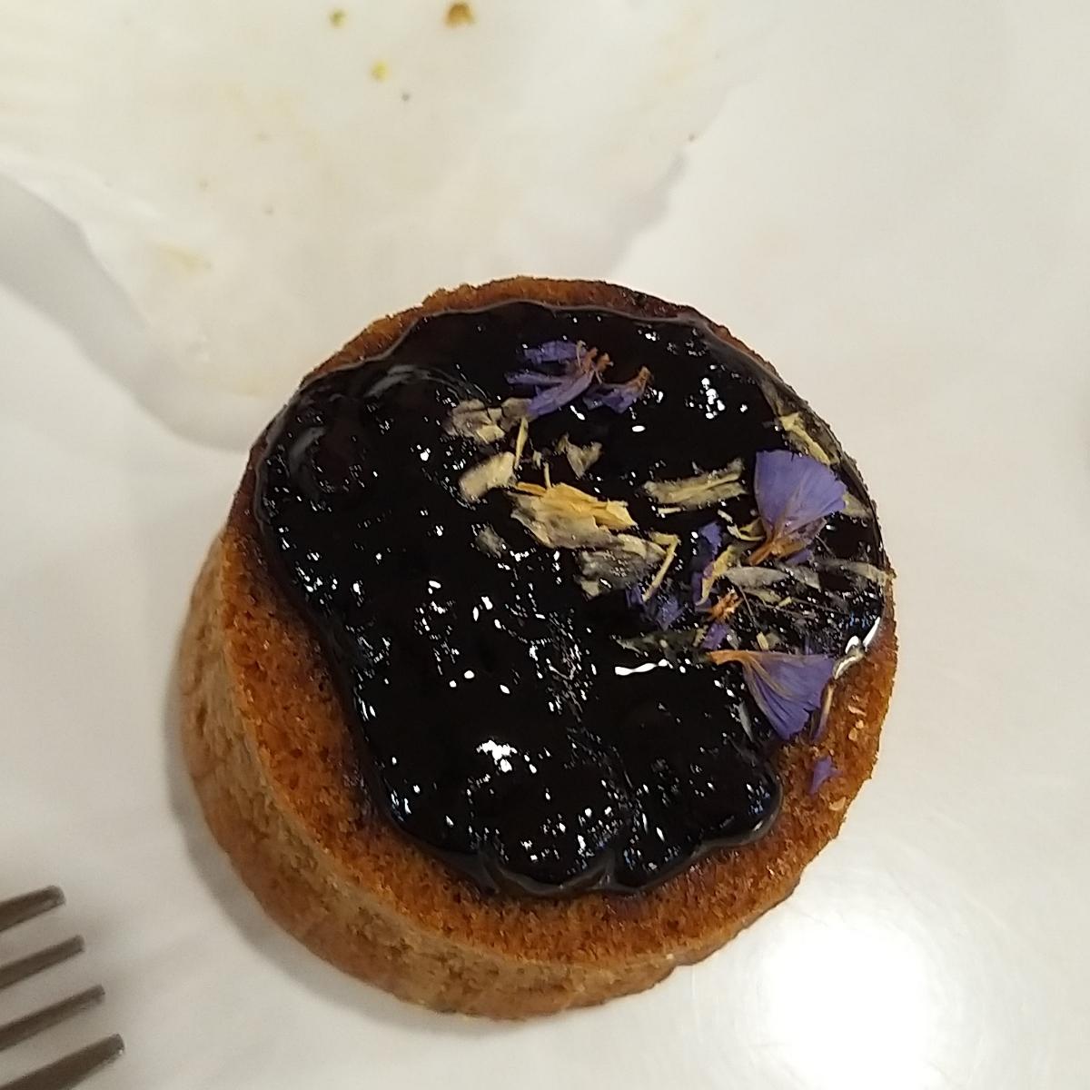 the blueberry jam was pretty sweet, fortunately the sweetness balances out well with the lavendar cake👍lavendar scent was very fragrant and i like the texture and denseness of the cake :) #cake #dessert #vegan