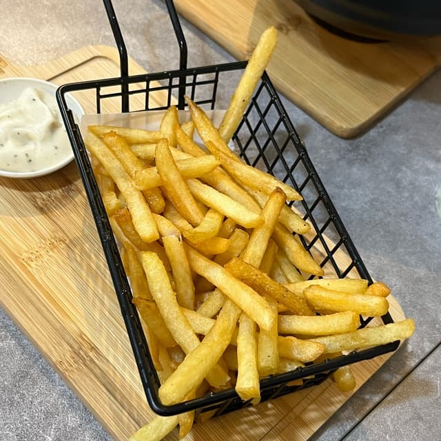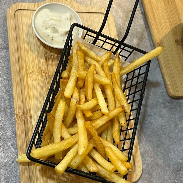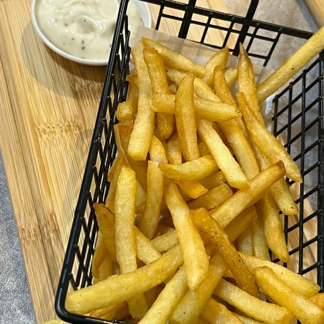 The lad enjoyed this wholeheartedly. The mayo dip was really fragrant and the fries, served piping hot, had a lovely crisp going.