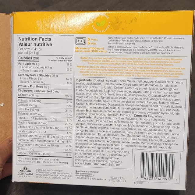 I love gardein products but wasn't a fan of this one. I don't usually buy microwavable meals either but thought I'd give this a try as it seemed like a "healthy" quick meal based on the nutritional profile (second photo).