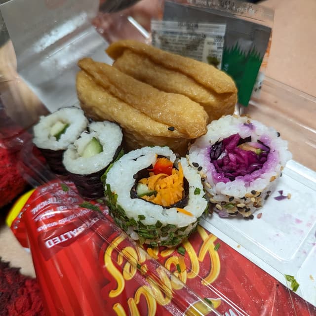 Was yummy but like only the mushroom one was like unique I guess, the others were like mid. Purple cabbage one. Carrot one and like mini standard rice ones. Probs like misnaming all of them lmao.