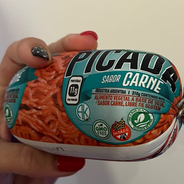 Picada sabor carne - es muy buena! Yo hago empanadas, pastel de papa, salteada para acompañar con arroz, de mil formas! Y como siempre agradezco que tenga el logo sin tacc porque mi marido es celíaco :)