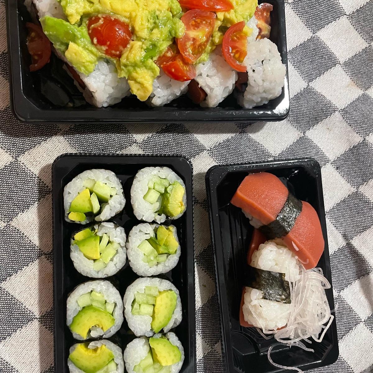 Pedimos sushi para llevar porque vimos que tenían opción vegetal. Estaba bastante bueno y no era muy caro