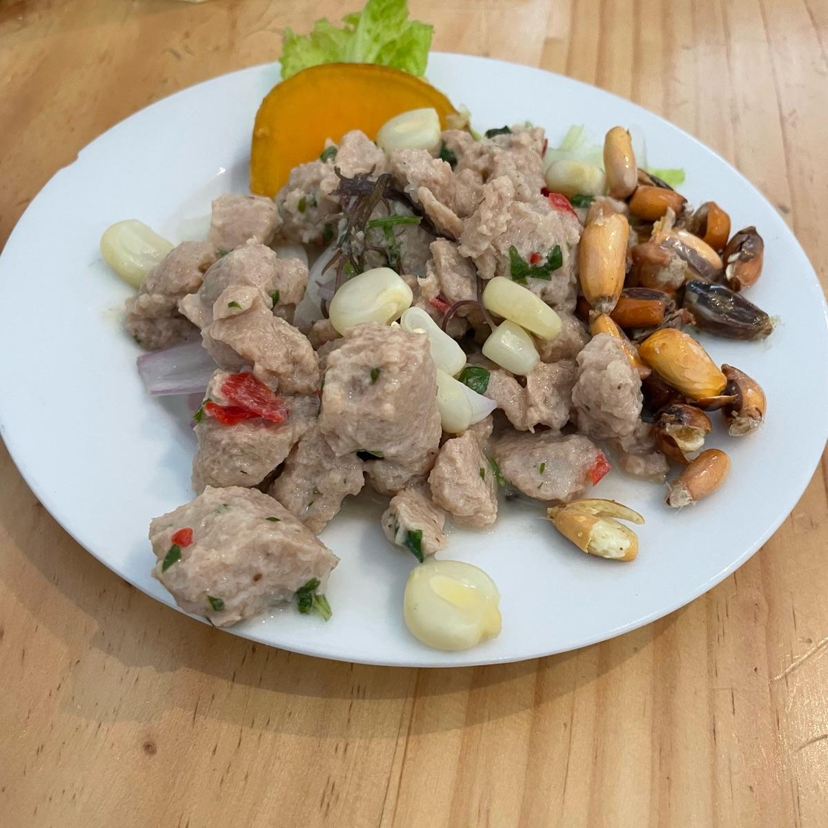 Ceviche vegano con soja texturizada en lugar de pescado.