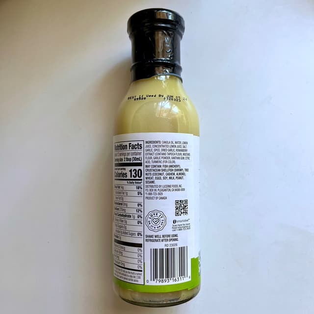 This golden emulsion is on the thin side and pours quickly. The first thing I tasted was bold #garlic, followed by tangy #lemon and savory mustard. It wasn’t too sour, which I really appreciated; it paired incredibly with the peppery flavor of arugula/rocket. The Open Nature private label touts its freedom from artificial ingredients, and in general most are recognizable — though I’ll admit to having to look up rowanberries.