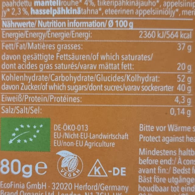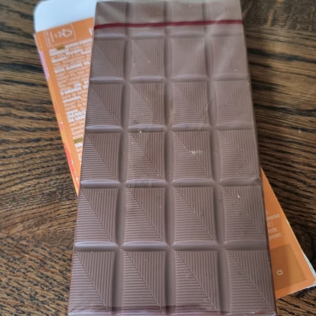 This #chocolate from iChoc with #orange and #almonds was pretty good. The flavor is somewhat subtle though and could probably be a bit more noticable, but it's still quite good, and the #veganchocolate is light and has no bitterness to it, so it's a great combination. The pieces of almond are also very small, so it's a bit crunchy, sometimes when they add nuts, they make the pieces too big, so this is perfect.