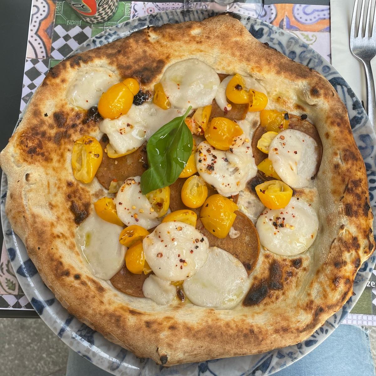 Nel complesso buona però salame da solo aveva un gusto strano e mozzarella un po’ appiccicosa. Poi le pizze bianche non sono le mie preferite. Impasto molto molto buono però