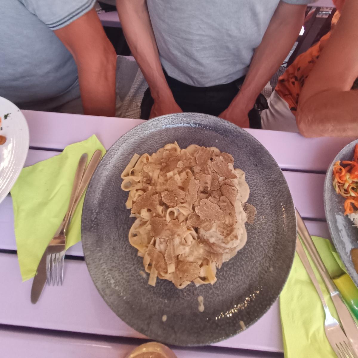 Piatto completo, proteine e tagliatelle al tartufo.Buono!