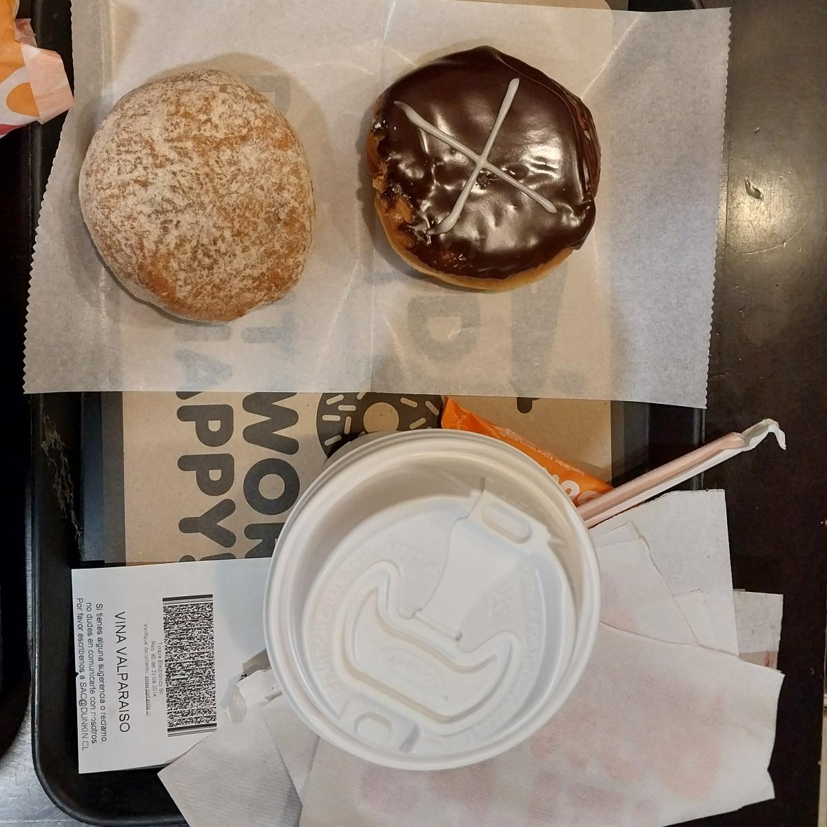 Fuimos con un amigo a comer donuts. Yo ya había probado las con notmanjar, asì que en esta ocasión volví a pedir la Boston notmanjar y una de manzana canela. Además de un cappuccino con notmilk. Mi amigo se pidio las dos con notmanjar: Boston y azucarado.