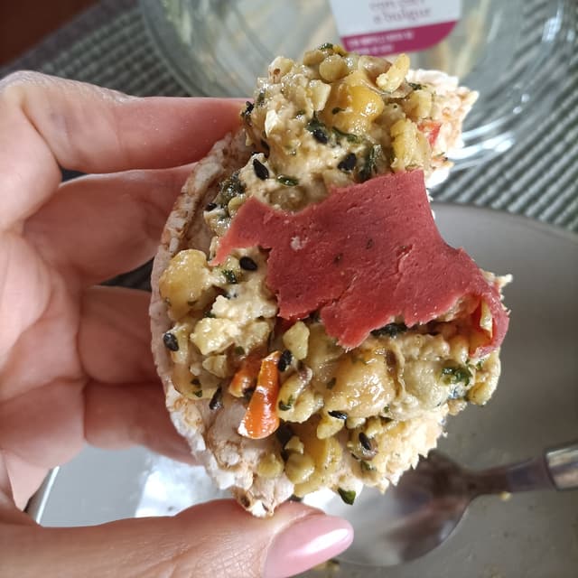 Sicuramente buona se ti piacciono le spezie forti. Per me è stata la prima volta che l'ho provato ed è stata dura finirlo. L'ho mangiato con gallette e affettato vegetale. Ma è sicuramente questione di gusti.