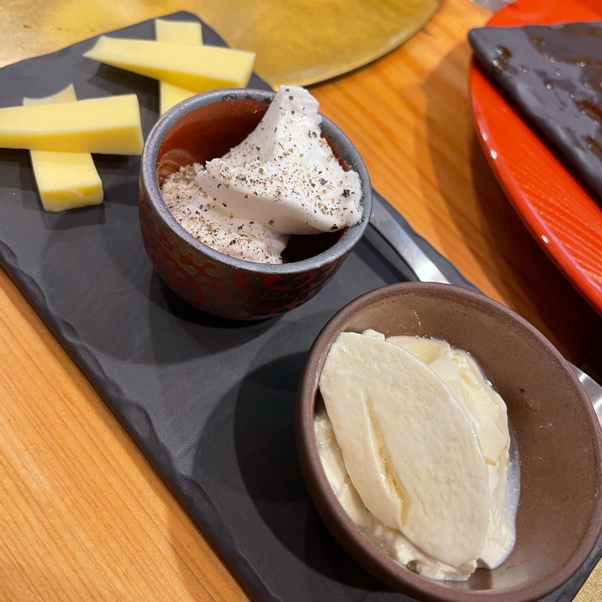 improbabile tagliere di formaggi (!) in giappone, li volevo provare data la curiosità. sapevano tutti molto di olio di cocco, fatta eccezione per lo spalmabile nella ciotolina a dx, che sembrava invece un silken tofu dolciastro, molto molto buono. il mio compagno invece ha preferito lo spalmabile centrale! un po’ pepato