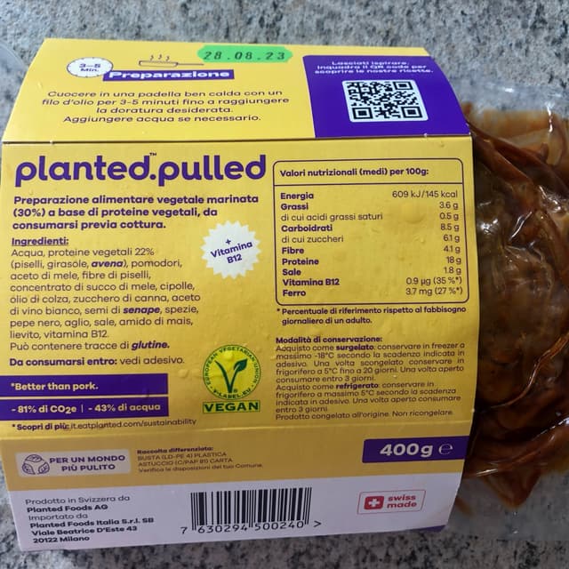Alternativa vegetale alla carne con ottimi valori nutrizionali e privo di conservanti. Come potete vedere dalla data sulla confezione è un prodotto fresco da consumarsi in breve ed è davvero buonissimo dentro ad un panino farcito. Il sapore è un pochino piccante e ricorda molto la carne degli hamburger tradizionali. La preparazione è davvero veloce, basta qualche minuto in padella con un filo d’olio è un pochino d’acqua e il gioco è fatto, consigliassimo!! #vegan #veganisnotscary #veganitalian #veganitaly #veganitalianfood #plantedbased #planted #plantedpulled