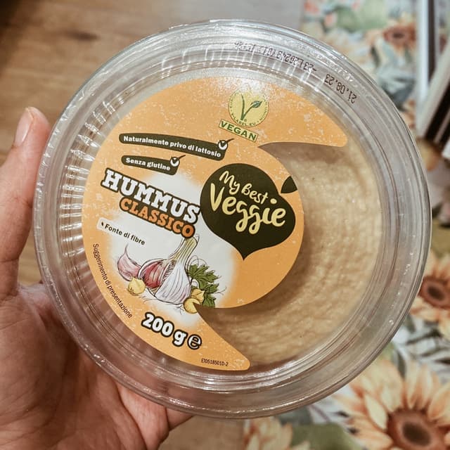 Hummus classico che trovo alla Lidl. È buono, sa molto di aglio 🧄 e un po’ di curry. Perfetto su dei crostini o con delle nachos. Se non amate l’aglio non fa per voi
