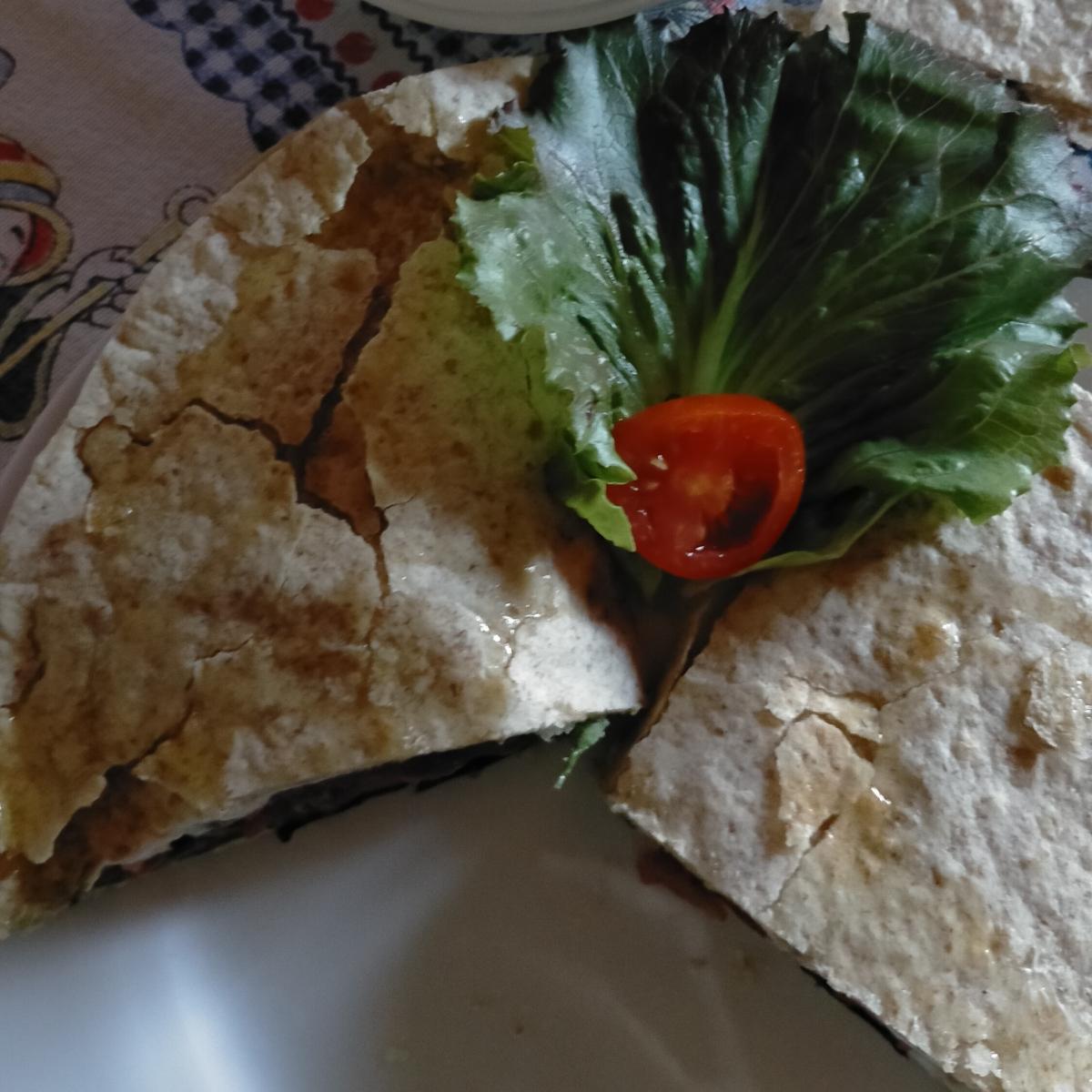 Oggi ho realizzato questa piadina, veramente deliziosa! Farcita con questo formaggio, spalmabile preso da Lidl, in occasione della settimana veg, poi affettato veg, pomodoro 🍅, insalata