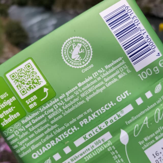 Contiene mandorle, nocciole, quinoa, in buona quantità , con cioccolato fondente 🙃