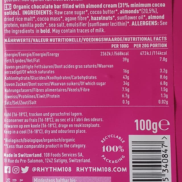 Empaquetado reciclable y precioso. Lo compré junto con el de avellana (ya hice reseña). Es cremoso y rico, pero muy dulce como para comérmelo solo. No sabe mucho a almendra así que lo he usado para hacer chocolate con kikos pero a mi hermana (no vegana) le gusta tal cual y dice que sabe al chocolate con leche de toda la vida. Es un gran punto a favor que se trate de una compañía vegana. Volvería a comprarlo para el chocolate con kikos pero creo que me quedo con el de avellana.