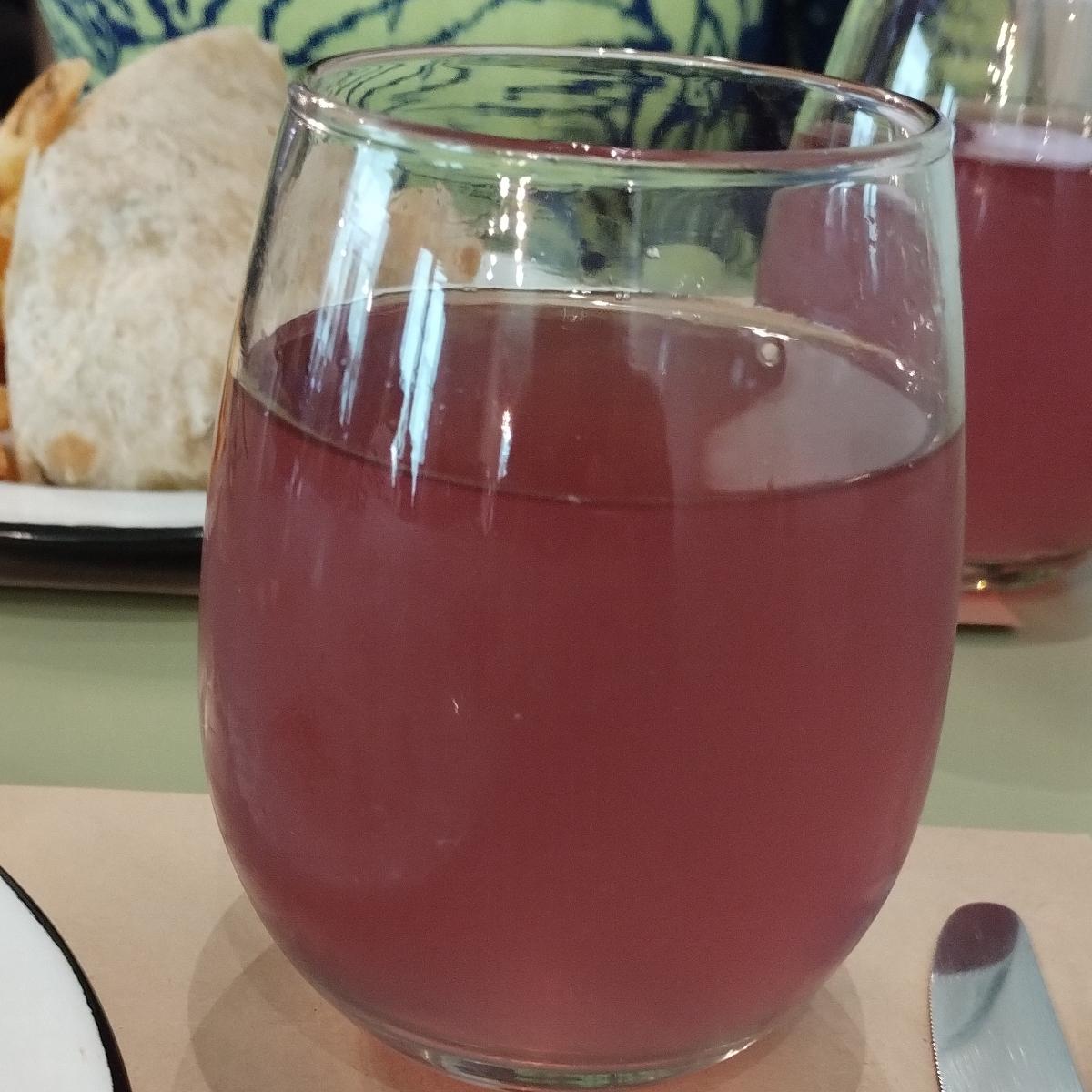 Hermosa agüita de la casa que viene con refill por lo que resulta muy economica. De arandanos, jengibre y... Algo mas que no recuerdo !! Para nada dulce.