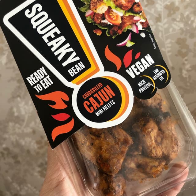 These taste nice, but I did find I had to cut them down into thin strips before frying them. The Cajun flavouring is nice, and I imagine they’re a good replacement for someone missing this type of thing. Quite expensive though, and the portion size is small. Marked vegan.