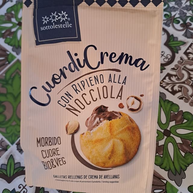 Sono buonissimi, sono friabili e dentro c'è un po' di crema alla nocciola, scarsa di quantità ma buona, non troppo dolce e sa di nocciola. Sono finiti subito questi biscotti perchè sono solo 200g e non sono molti di numero. Perfetti come piccolo accompagnamento a un tè, quando si deve offrire qualcosa. Sono pure bio, quindi saranno biscotti di qualità, e infatti il prezzo è oltre i 3€, da Naturasì.