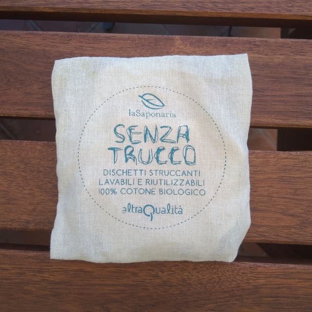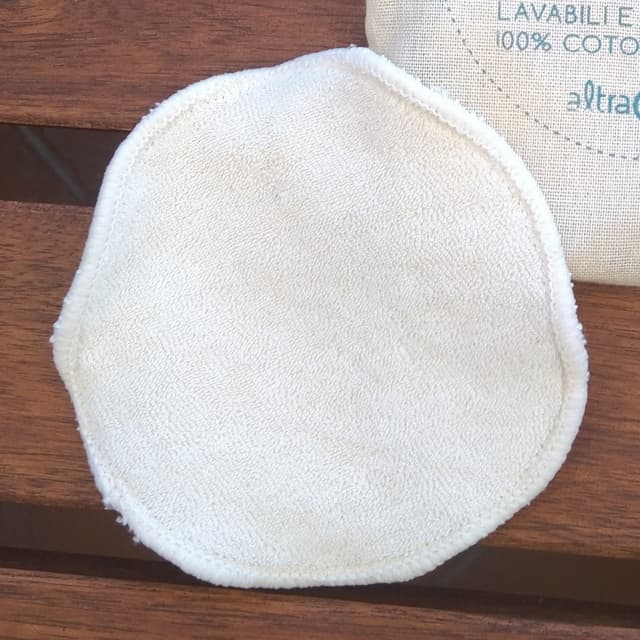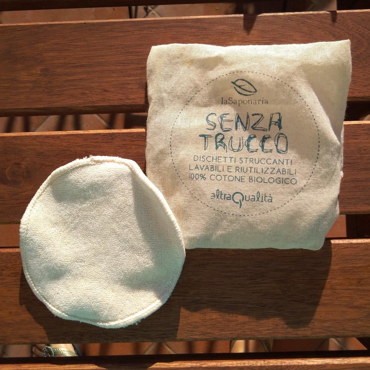 Lo uso ormai da anni e mi trovo benissimo. Sono tre dischetti in cotone biologico belli grandi, di solito li uso con l'acqua micellare e struccano molto bene. Una volta usati si lavano con sapone di Marsiglia e tornano puliti e morbidi.
