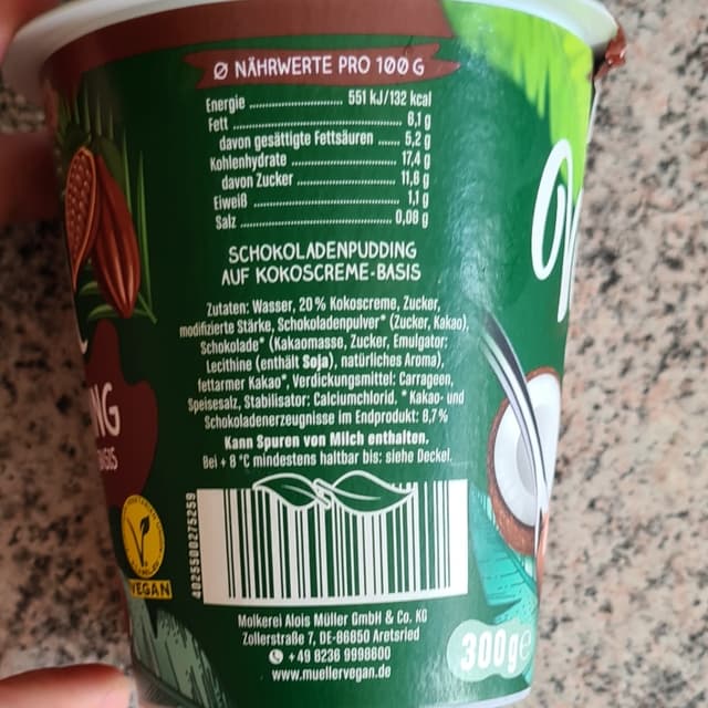 Very creamy chocolate pudding, but the coconut flavor is clearly noticeable.1,89 € (Rewe)