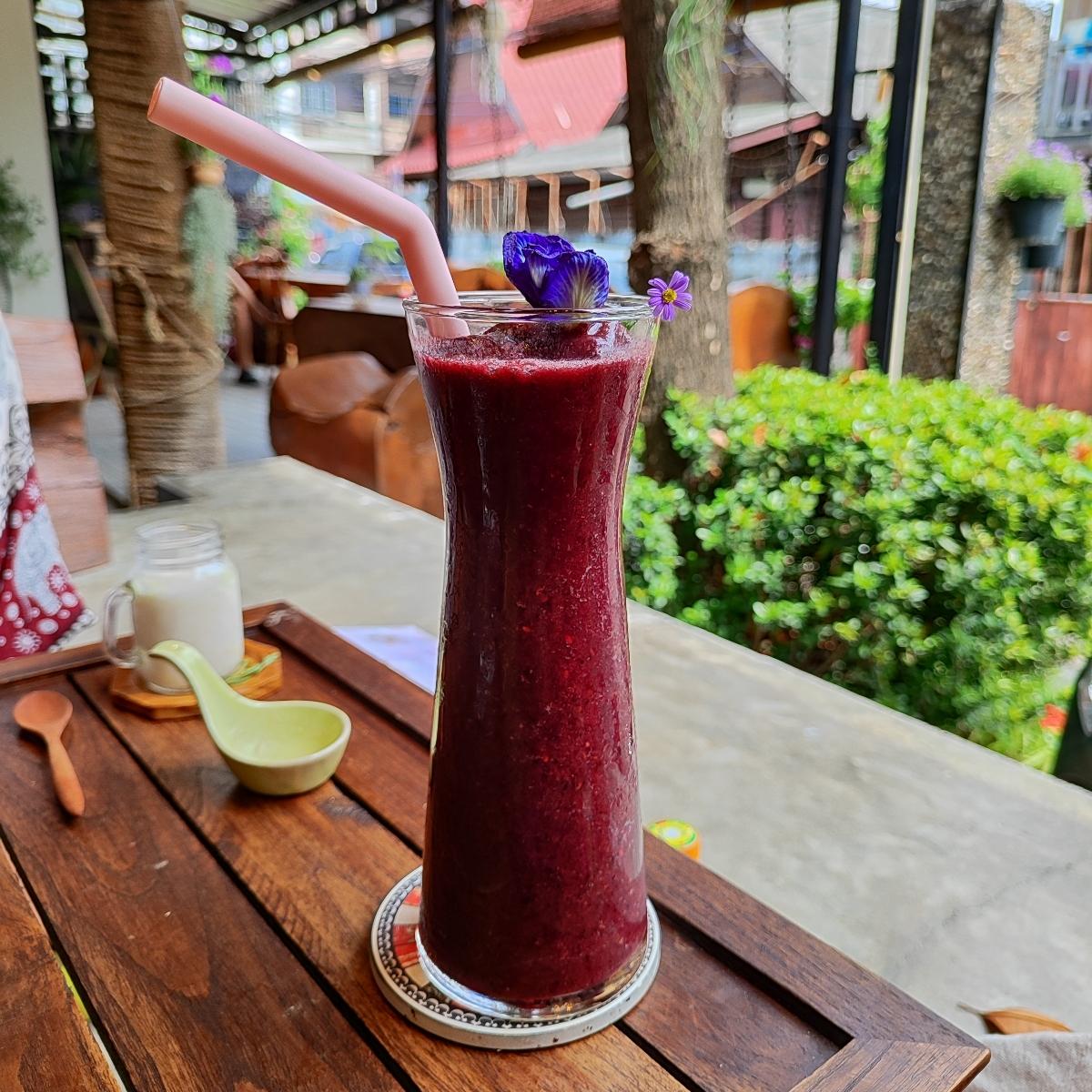 A huge #smoothie with #acai , #banana and #berries . I am very happy that Pure Vegan Heaven has opened a place in the Old City or Chiang Mai now. Their other locations in CM is lovely but it's a bit far out of the town. Enjoyed this #nosugaradded smoothie , just simple and absolutely delicious.