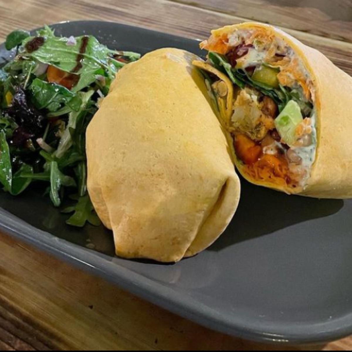 These wraps are so generously filled, full of ingredients & flavour. This had a lot of salad as well as onion bhaji & I can’t overstate how well this works & how delicious it was