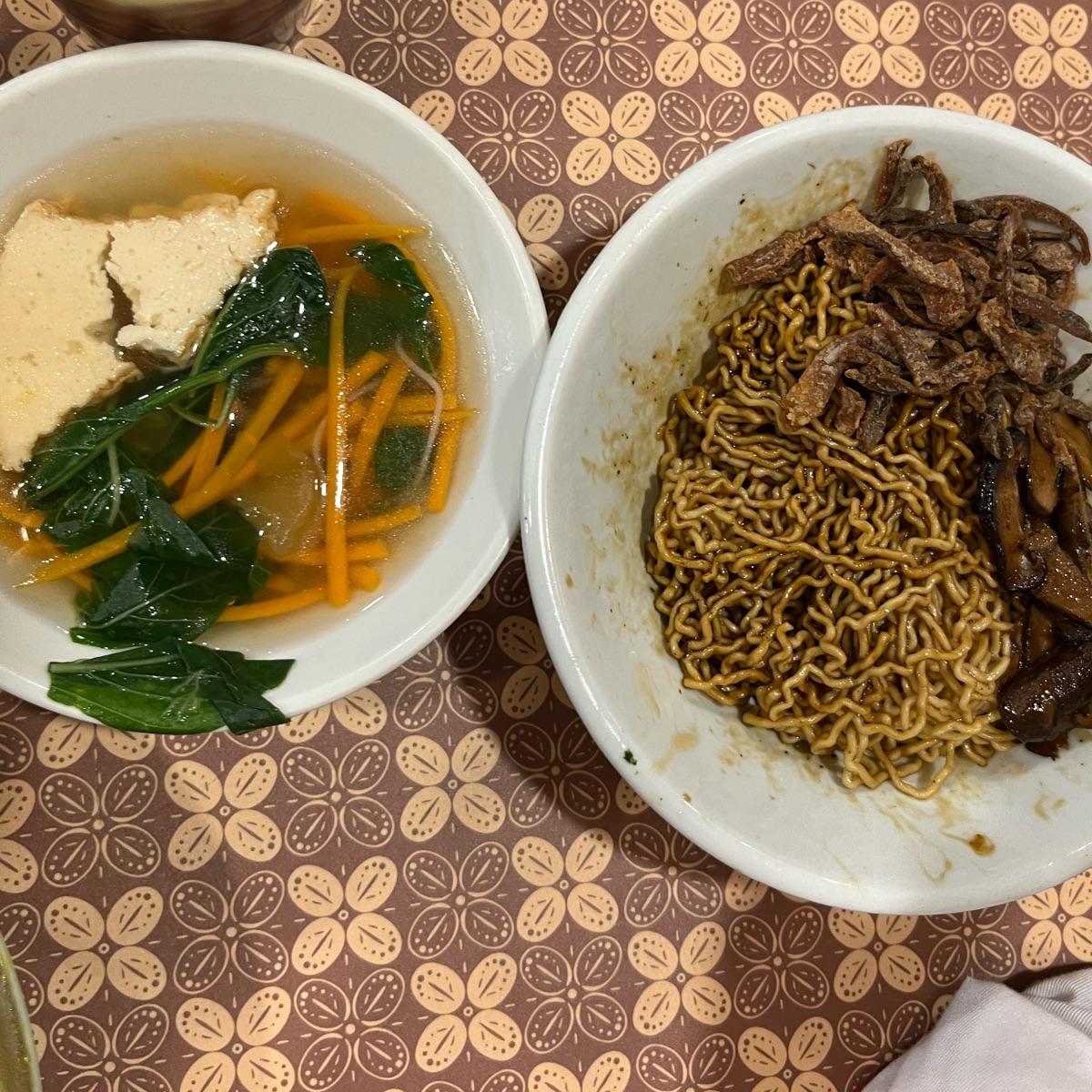This was delightful. Loaded with #mushrooms #tofu #leafygreens and #carrots. The noodles were super springy. #indonesian #halal #noodles #meekolok