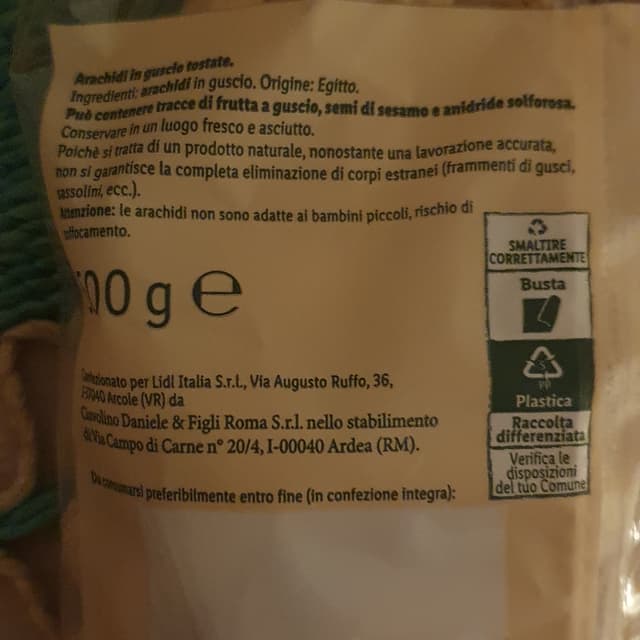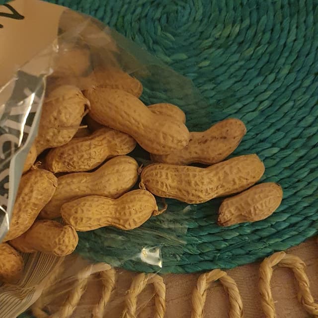 Arachidi tostate in guscio. Buone una tira l'altra.